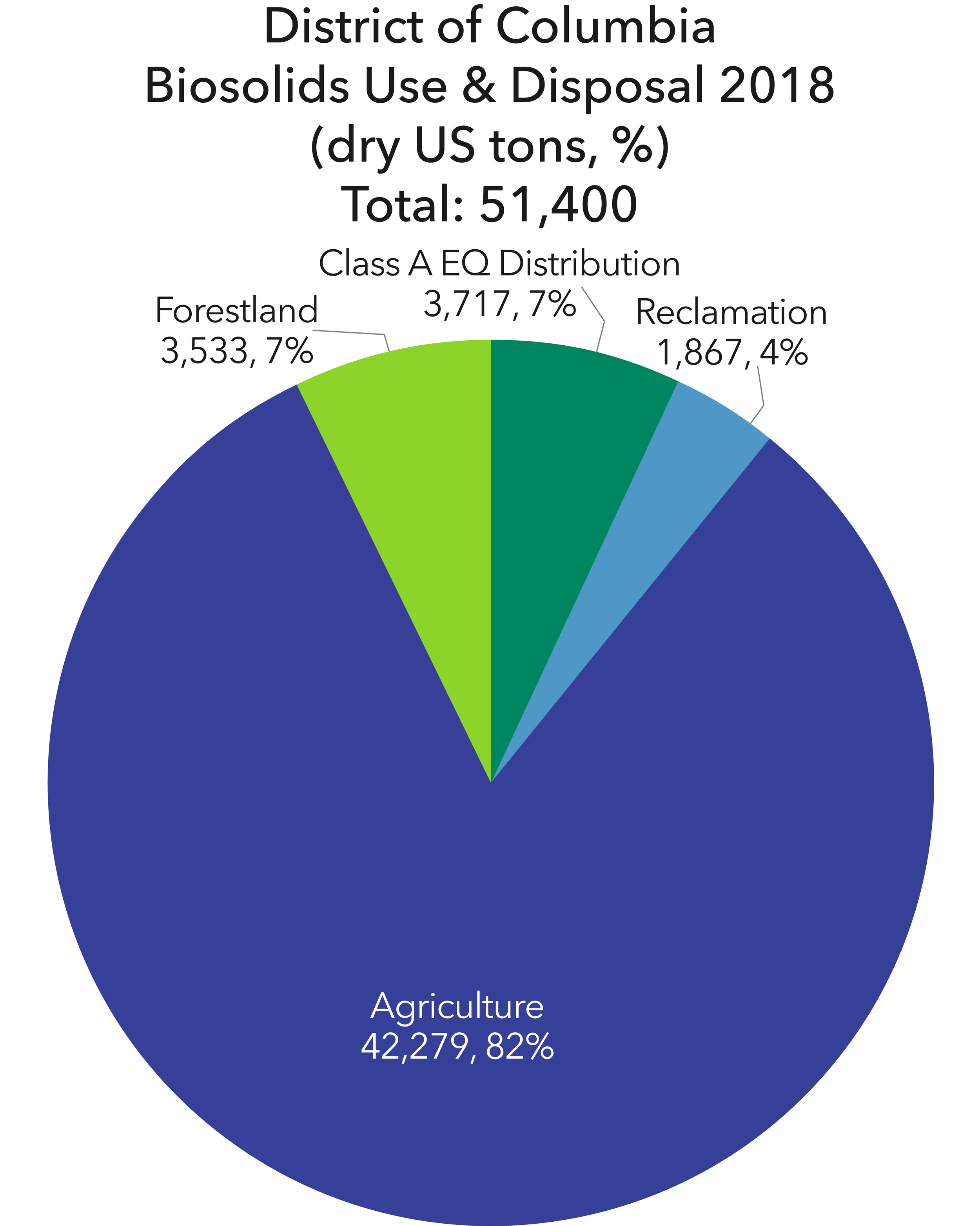 “Several extreme factors and evolving dynamics made 2018 [the year for NBDP data] a poor reflection of the state of the DC Water biosolids program. Class A EQ Distribution: Distribution quadrupled between 2018 and 2019, exceeding 40,000 wet tons in 2019 and 45,000 wet tons for 2020. Long Term Storage 2018 presented abnormal storage conditions for the DC, MD, and VA region. Land application was severely limited in summer/fall 2018 due to excessive rainfall creating an unprecedented challenge to find additional storage sites. Typical storage rates for end of year are less than half of what was experienced in 2018."