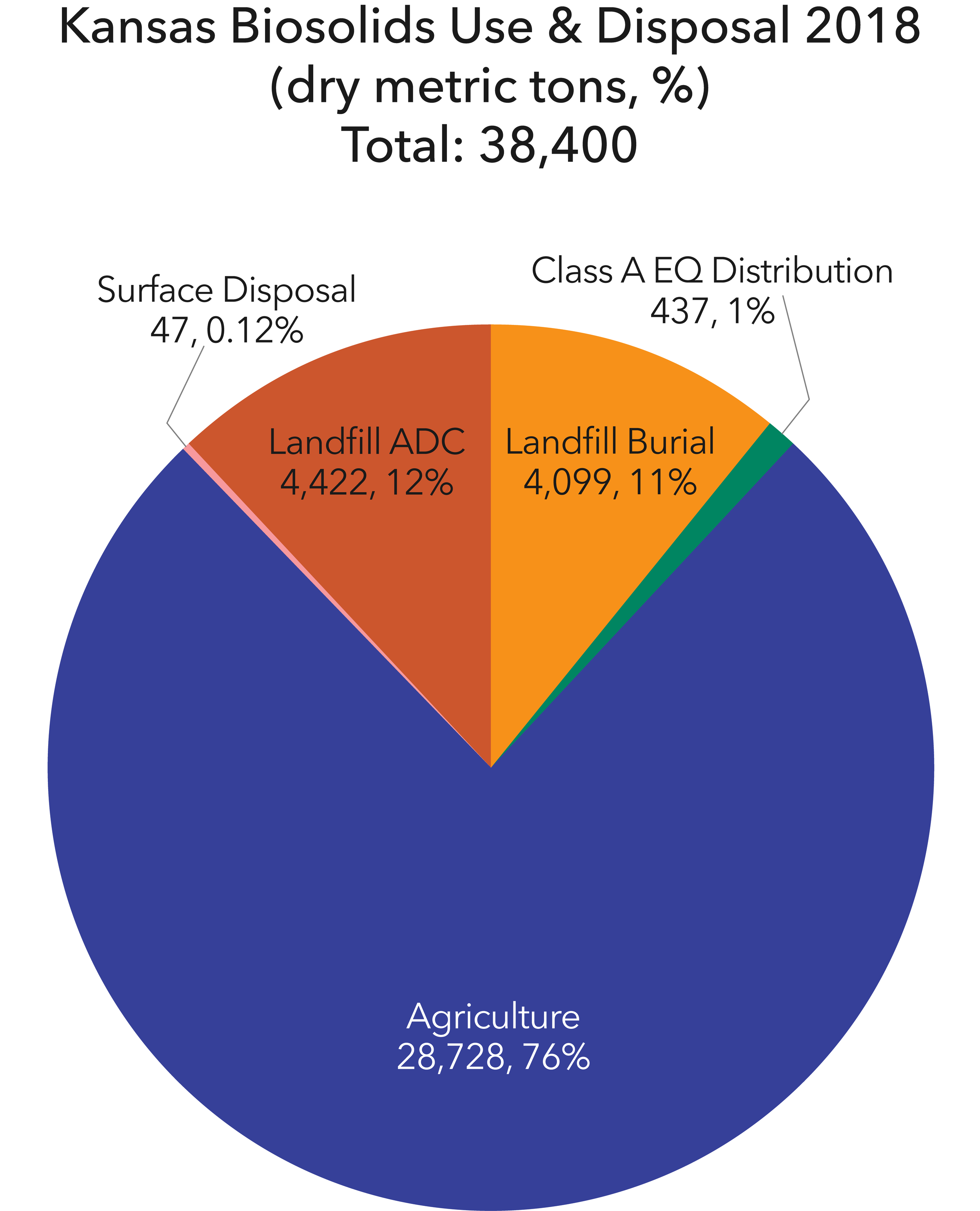 ● Kansas’ other large WRRFs – including Wichita, Topeka, Lawrence, and Kansas City, KS – also land apply their biosolids, most of which are treated to Class B standards, although Topeka and KCK also send some solids to landfill.