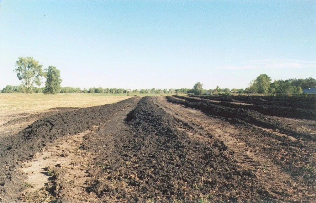 Biosolids compost windrows in Topeka. Photo courtesy of Sylvan Coles, City of Topeka.