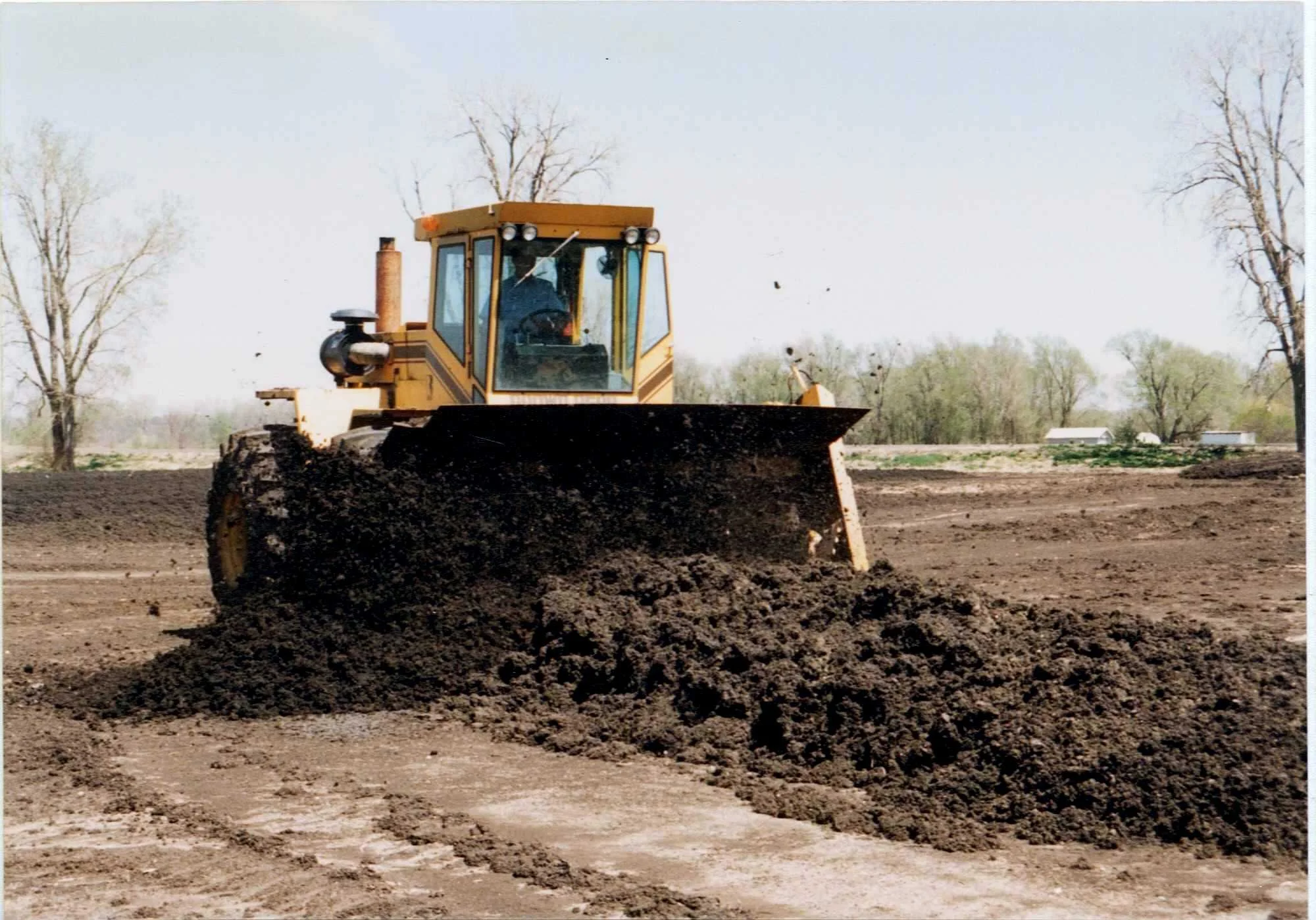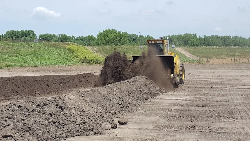 Composting biosolids in Topeka. Photo courtesy of Sylvan Coles, City of Topeka.