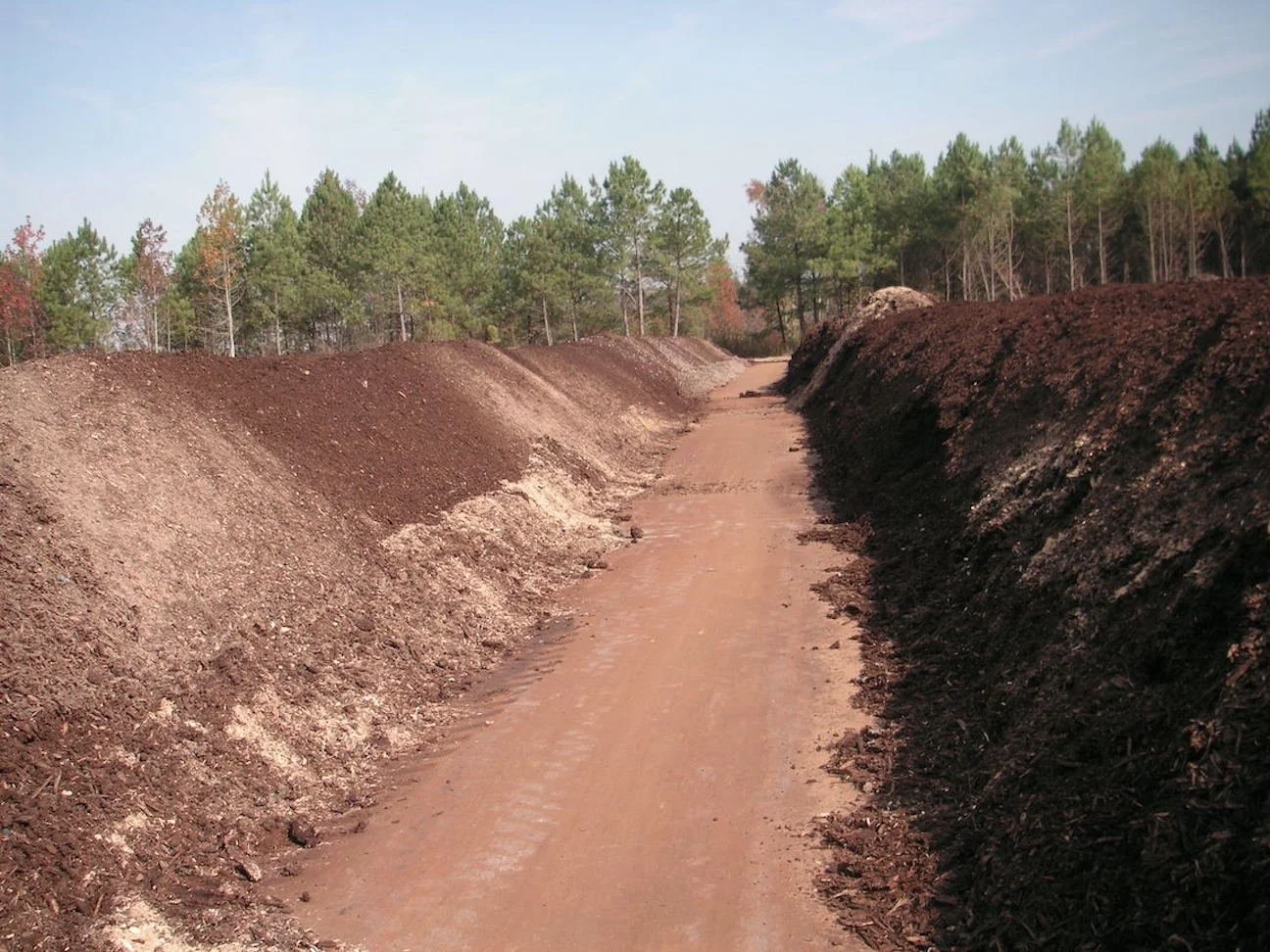 Biosolids compost windrows at Eastern Compost facility. Photo courtesy Bob Forbes, P.E., Jacobs.