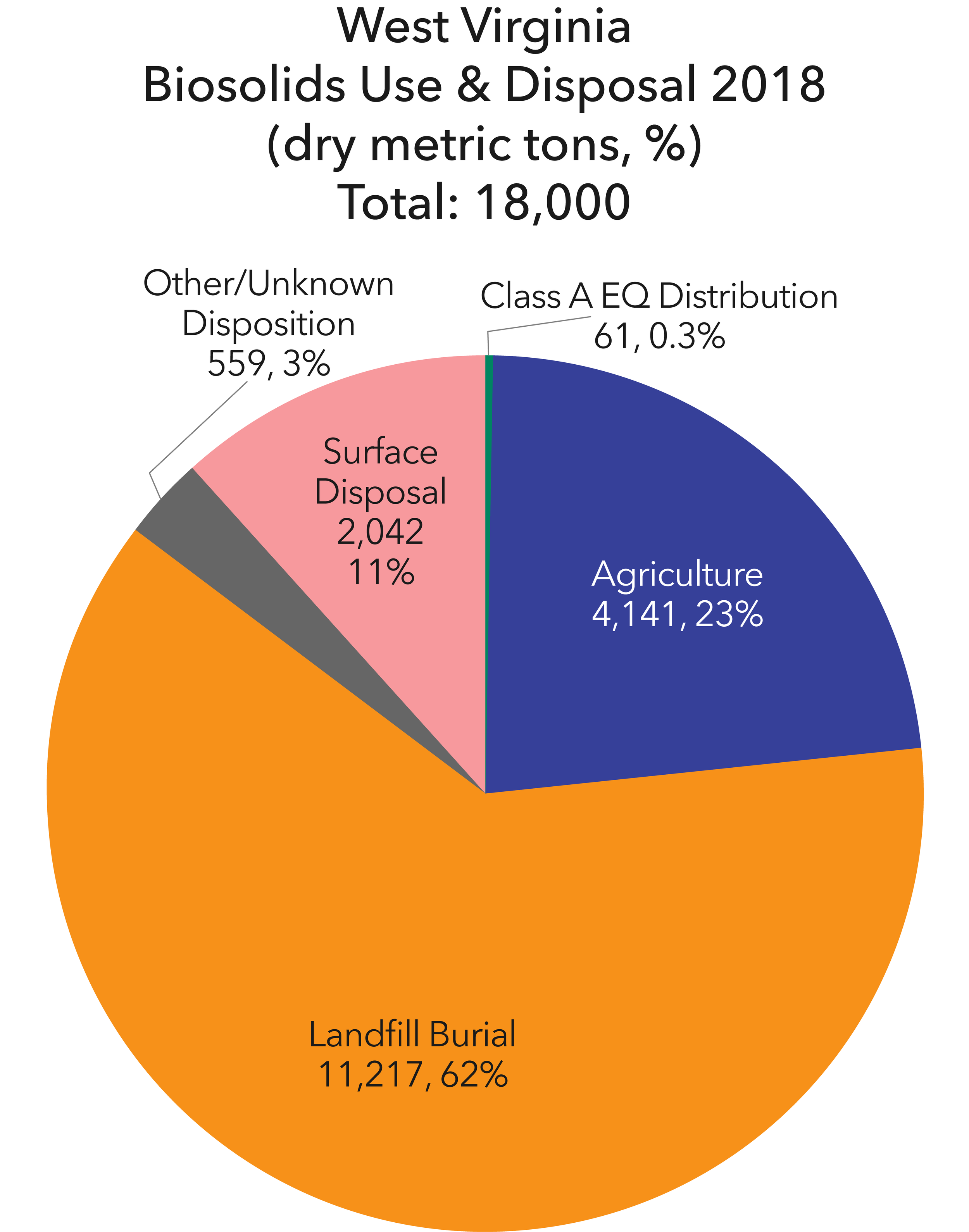 ● The WV Department of Environmental Protection (WV DEP) regulates the state’s “municipal sewage sludge (MSS)... in two ways: through the issuance of National Pollutant Discharge Elimination System (NPDES) permits, and by defining wastes that can be disposed of in solid waste facilities under Section 4.13.h. of the DEP’s Title 33 Series 1 rules. The issuance of NPDES permits is the responsibility of the Division of Water and Waste Management (DWWM) of the WV DEP and is the primary method of regulating MSS disposal. When a wastewater treatment facility applies for an NPDES permit, a certain method of MSS disposal is chosen. Individual treatment facilities are free to choose from a total of four permissible disposal options… landfilling, land application, marketing of the sludge, or a catch-all ‘other’ option.”